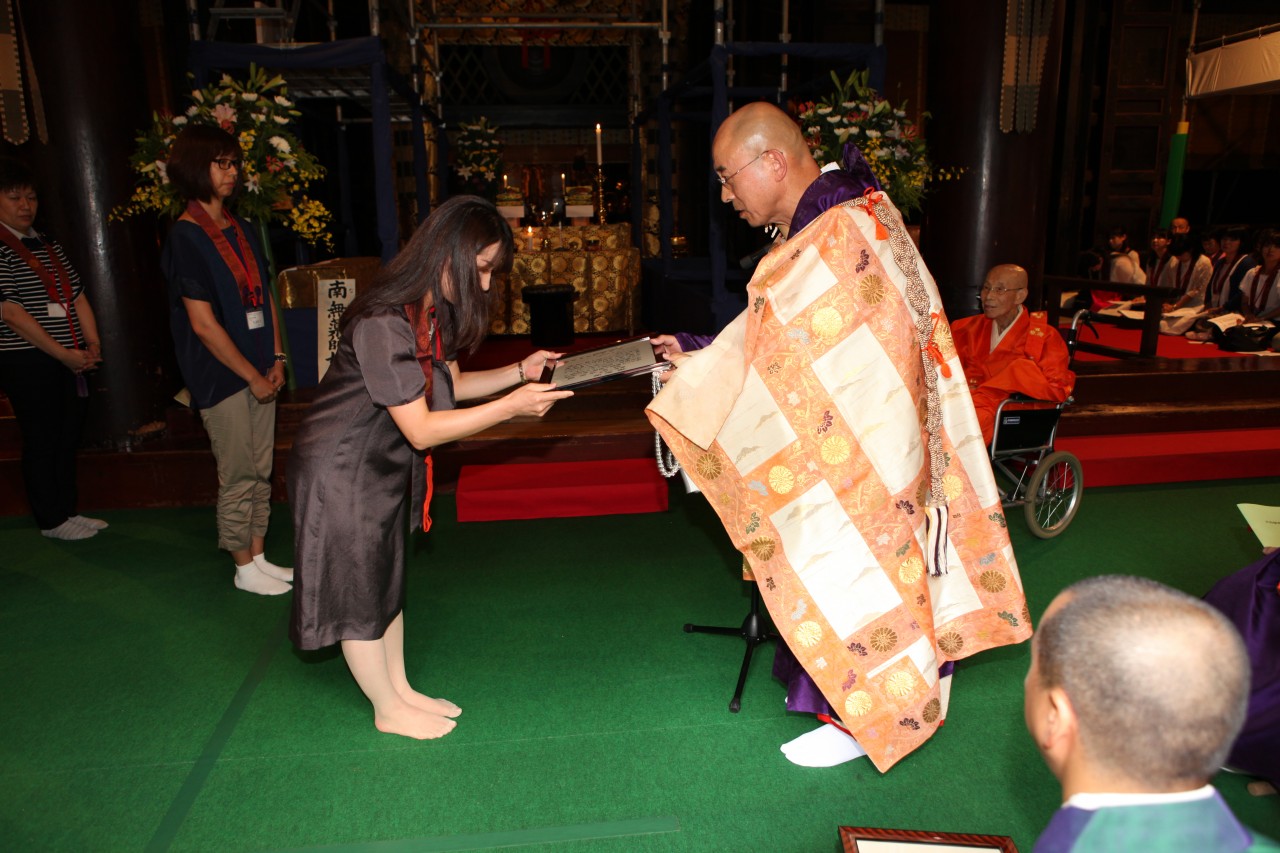 法要後、猊下ご臨席のもと、長年幼児保育にご尽力されている先生方に永年勤続表彰を授与させていただきました。